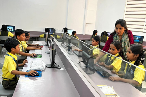 Computers are typically arranged in rows, so that each student has a similar view of one end of the room to facilitate lecturing. Students are taught various applications along with basic programming.